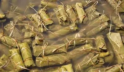 而在金丝峡,最不能错过的,便是那独特的槲叶粽子。与南方常见的箬竹叶粽子不同,金丝峡的槲叶粽子是北方特色的代表。槲叶,生长在高寒深山之中,形大如荷叶,气味芬芳,且具有活血、利小便等功效,在金丝峡的后山上到处都是。当地百姓在端午节前后上山采摘槲叶,将其带回后先放入锅中煮一下,使其变得柔韧,再仔细刷洗干净,便可以开始包粽子了。